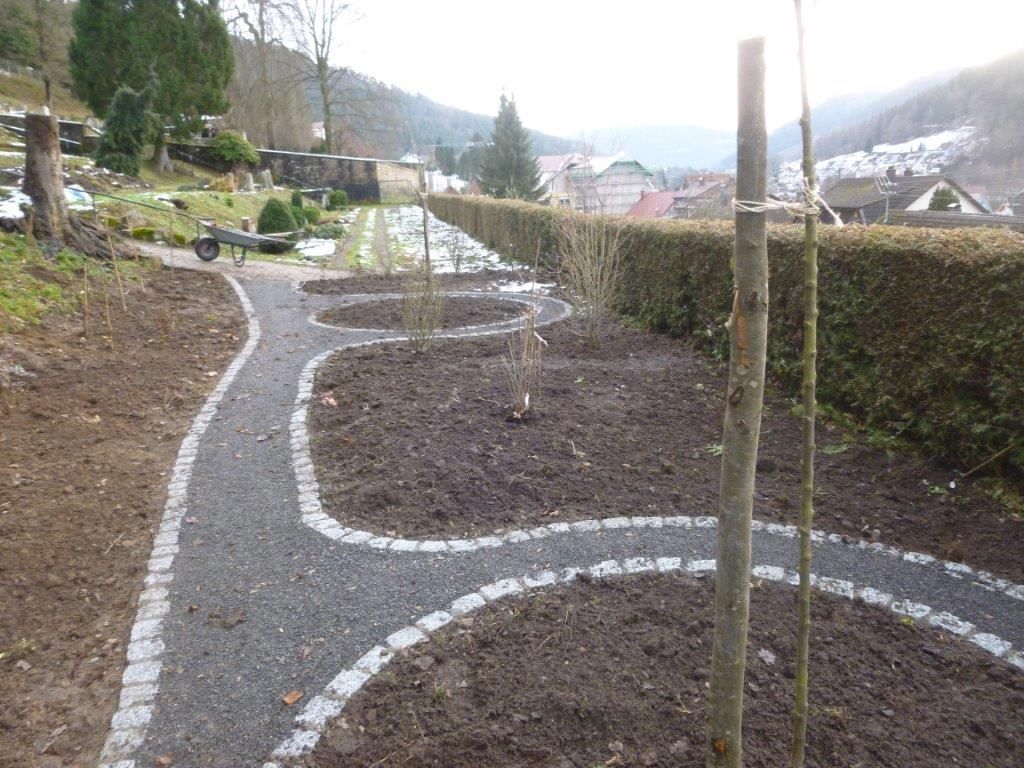 Das Foto zeigt den zuvor ungenutzten Bereich des Friedhofes in Höfen an der Enz, wo das neue Urnengrabfeld nach dem Konzept