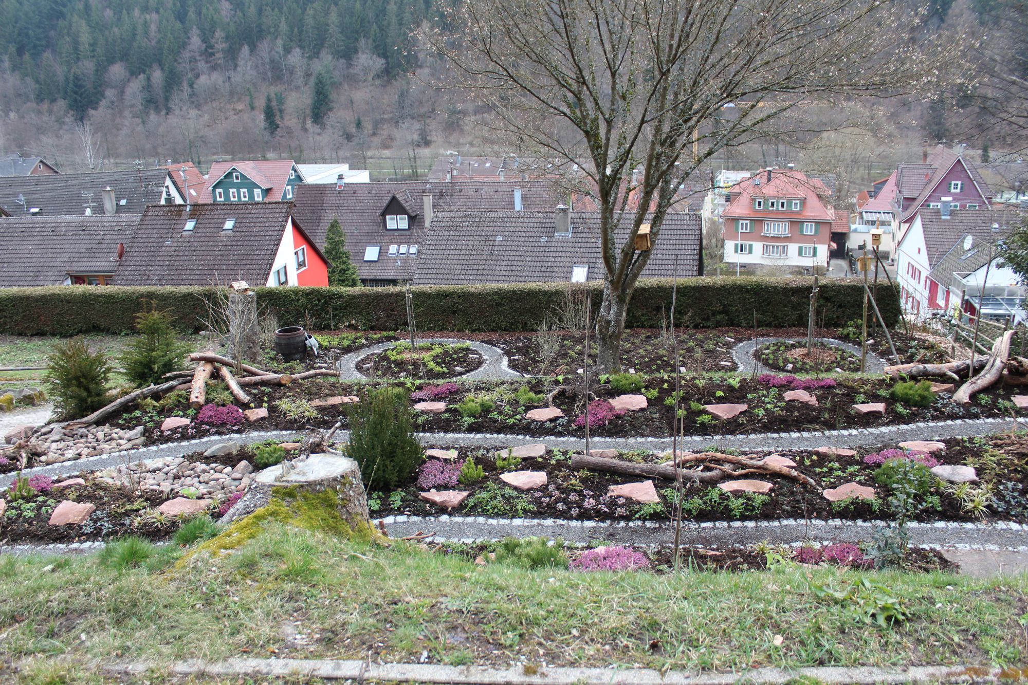 Das neue naturnahe Grabfeld ist terrassenförmig angelegt mit den Themen „Bestattung am Waldrand“ und „Bestattung im Bauergarten“. In dem Grabfeld sind Urnenbestattungen als Einzel- oder Familiengräber vorgesehen. Die Bepflanzung besteht ausschließlich aus heimischen Stauden und Gehölzen, die jahreszeitabhängig unterschiedlich blühen. Im Themenbereich Bestattung am Waldrand blühen aktuell Lupinen, während im Themenbereich Bestattung im Bauergarten Heckenrosen in voller Blüte stehen. Angeboten wird diese neue Bestattungsvariante von der Gemeinde Höfen, der örtlichen Gärtnerei Günthner und dem Calmbacher Bestattungshaus Ohngemach.